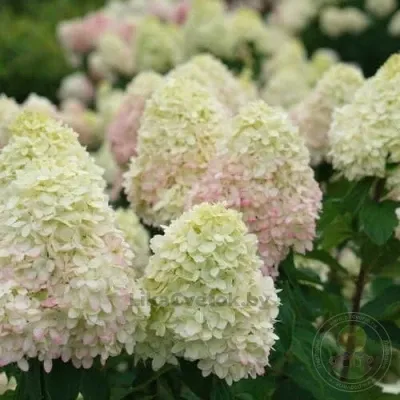 Метельчатая гортензия с эффектными зеленовато-белыми соцветиями, сохраняющими лаймовый оттенок в начале цветения. Куст среднего размера, нарядно выглядит в сочетании с другими растениями.